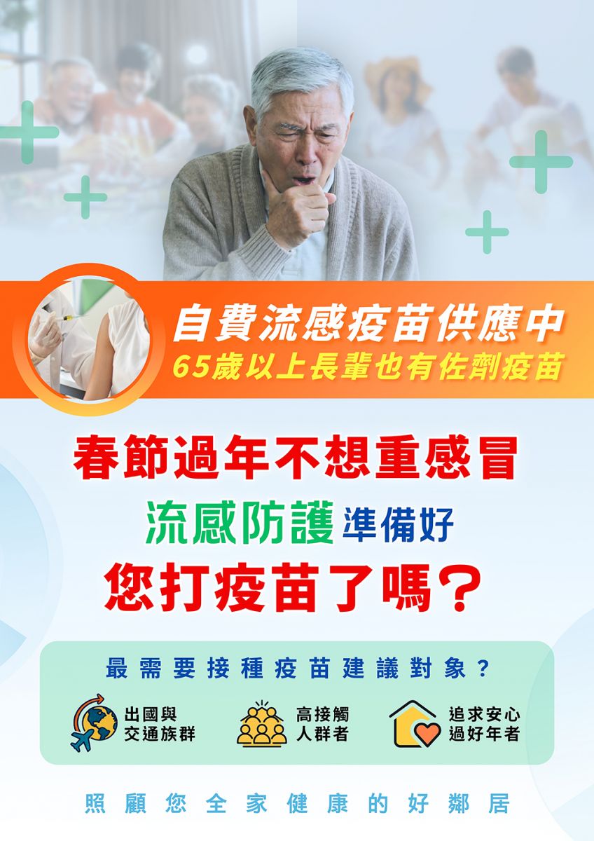 ➤若有流感疫苗或用藥需求,請洽詢醫師評估!